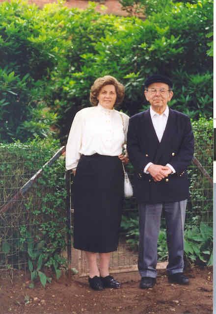 Synagoge 1990 » Synagoge 1990 Efraim-en-vrouw-voorsynagoge Image 16 of 16 Ephraim Schmidt (auteur oa van het boek Geschiedenis van de joden in Antwerpen ) en zijn echtgenote aan de ingang van de synagoge tijdens hun bezoek aan Kalmthout. Efraim verbleef tijdens de jaren 20-40 zeer dikwijls in Kalmthout. Alle Albums