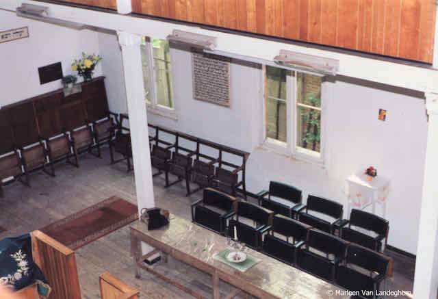 Synagoge 1990 » Synagoge 1990 Zijaanzicht-binnen Image 6 of 16 Binnenzicht zuidelijke muur . Foto genomen staande op de gaanderij voor de vrouwen . Foto 1990. Alle Albums
